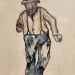 Samen op stap in de regen. De ondergrond is met acrylverf en de figuren met oostindische inkt.